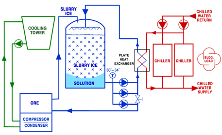流态化动态冰蓄冷技术克服了传统冰球、盘管式冰蓄冷技术中的最主要缺陷,制冷与蓄冷相结合,可利用电力峰谷段的电价差异,错开高峰用电,降低生产成本。